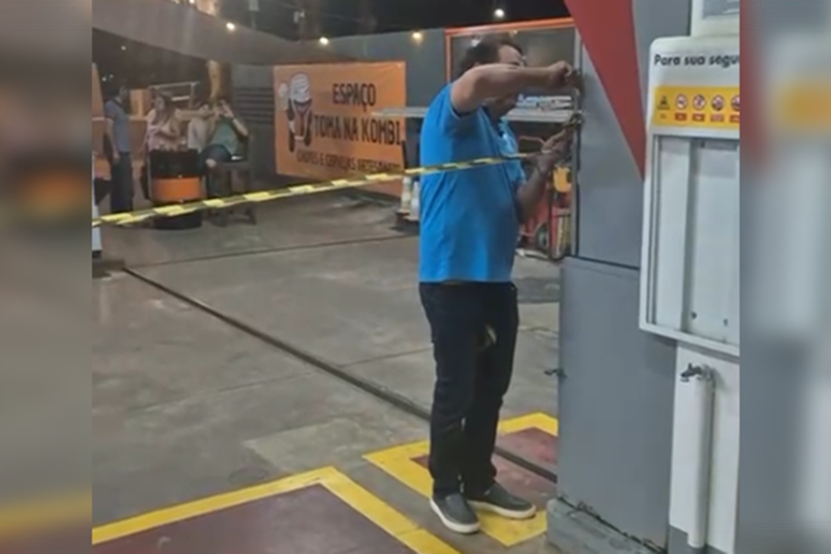 Após denúncia anônima, uma aferição constatou que o posto entregava até -200 ml por abastecimento. O Procon-DF lacrou o local