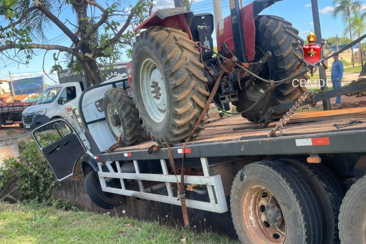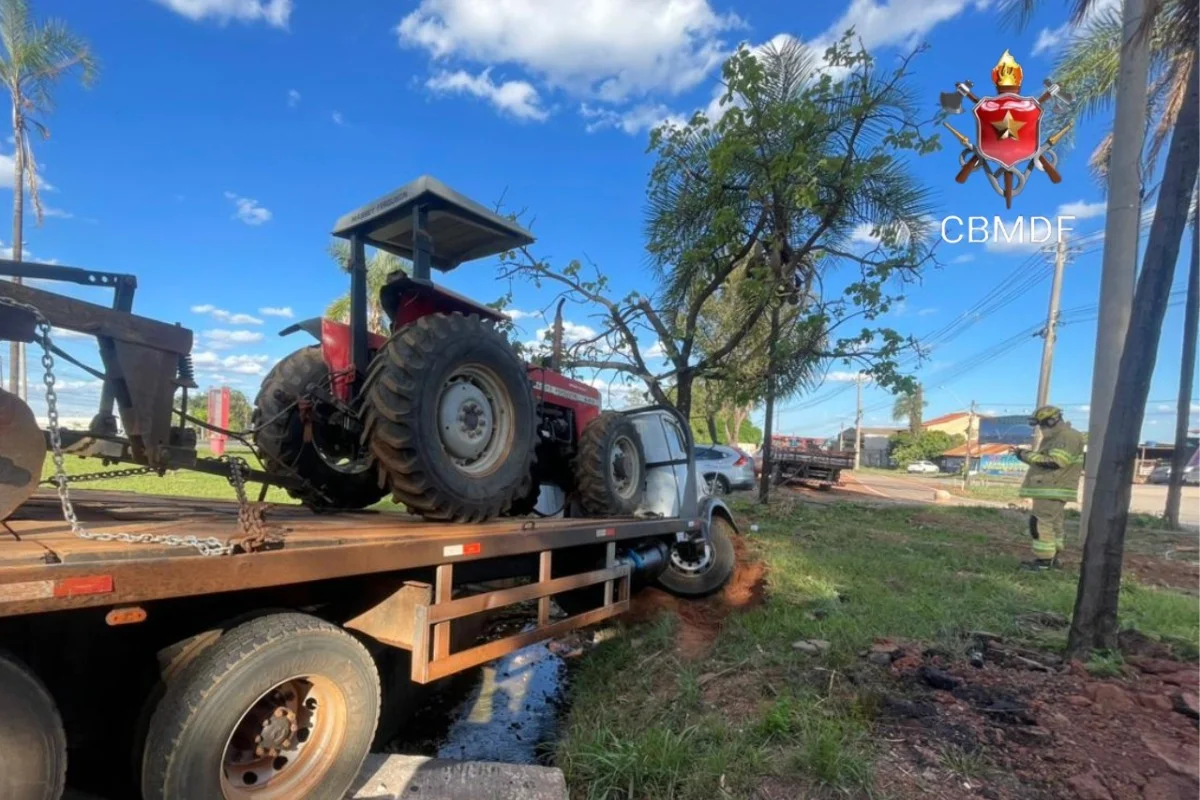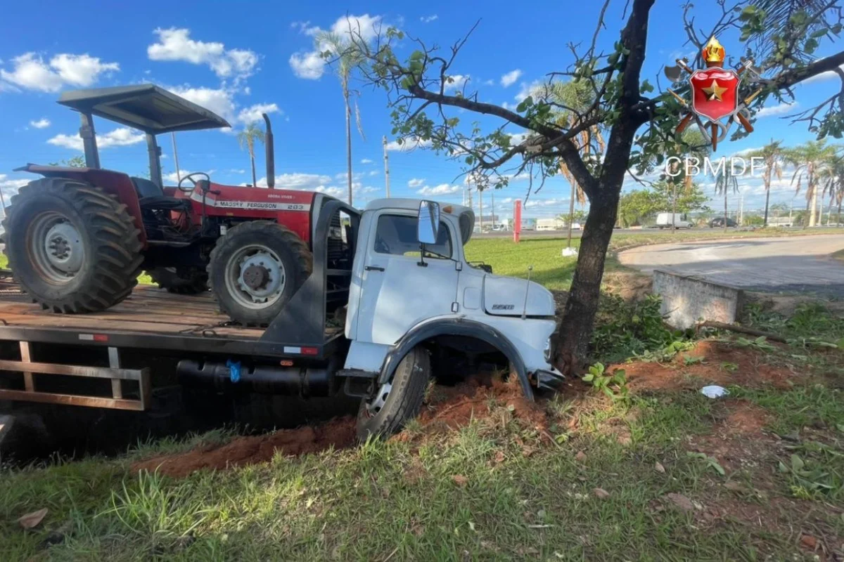 O Corpo de Bombeiros Militar do Distrito Federal (CBMDF) foi acionado até o local por volta das 16h20 com duas viaturas de socorro. Ao chegarem encontraram o veículo que carregava um trator batido na árvore.