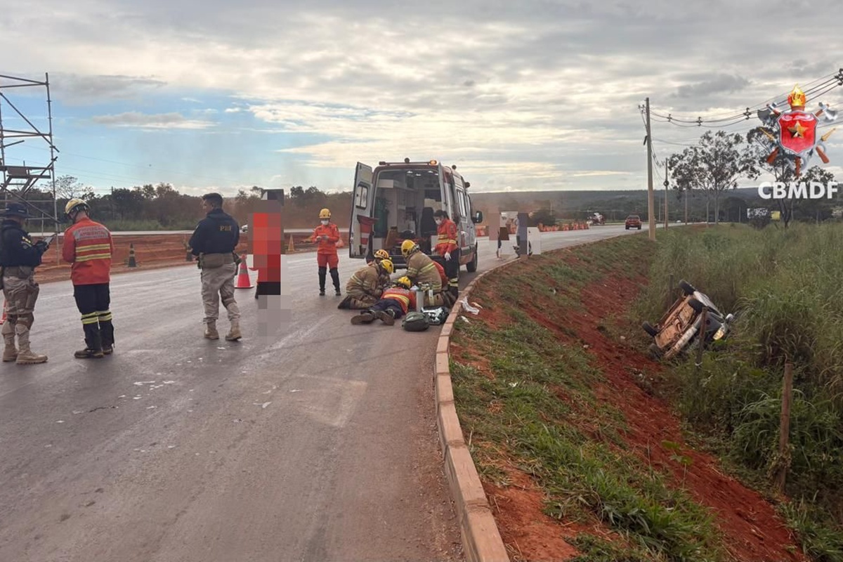 HomeDistrito FederalCarro com 3 ocupantes capota, atinge e mata homem na BR-020