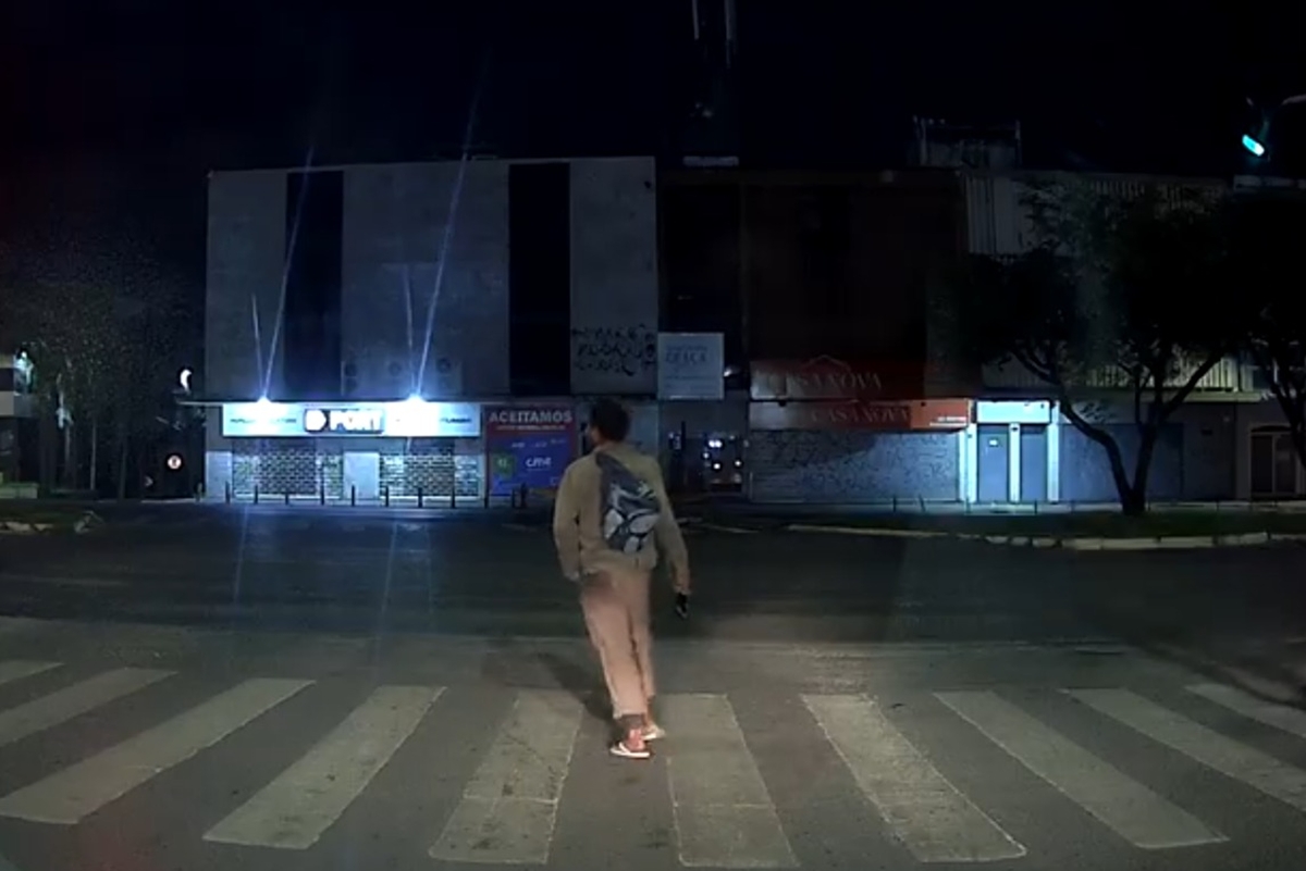 Caso aconteceu na Asa Norte (DF). Câmera de segurança flagrou o suspeito se arriscando em meio ao trânsito para tentar atingir viatura