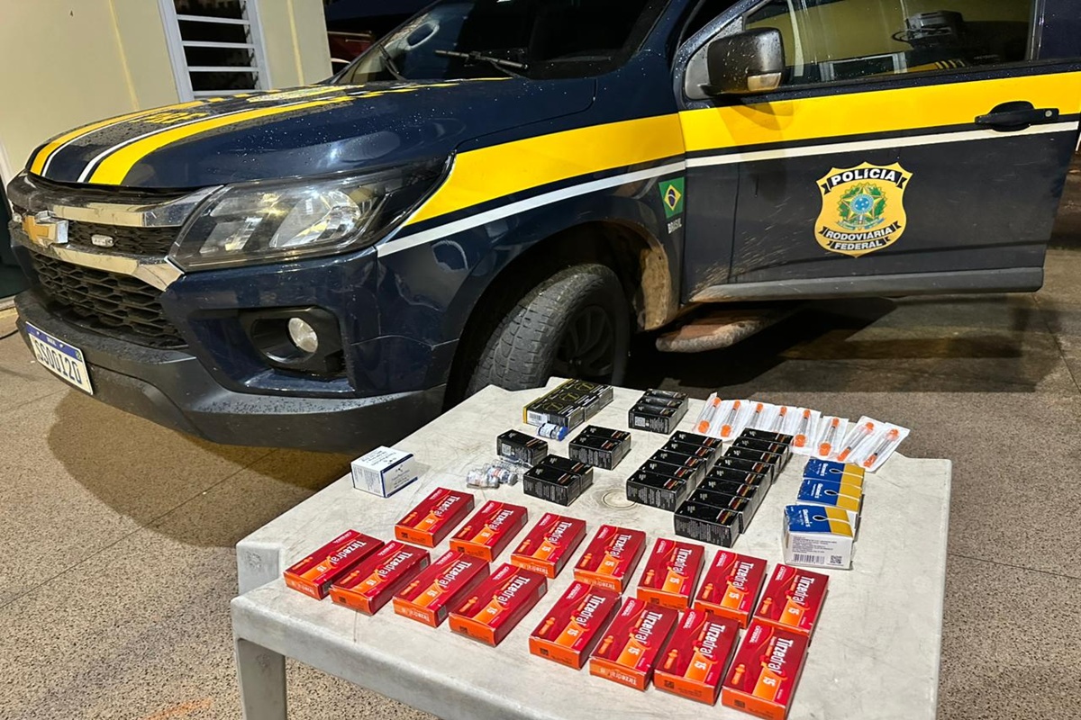 Homem foi abordado pela PRF durante uma fiscalização na BR-060 (DF). Medicamentos apreendidos não tem registro sanitário no Brasil