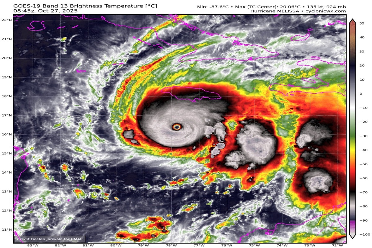 Nessa segunda-feira (27/10), o Centro Nacional de Furacões dos Estados Unidos classificou o Melissa na categoria 5, o nível máximo na escala de Saffir-Simpson.