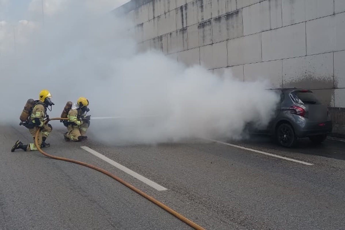 Carro pegou fogo por volta das 12h e bombeiros foram acionados para apagar o incêndio. Segundo o CBMDF, não houve vítimas